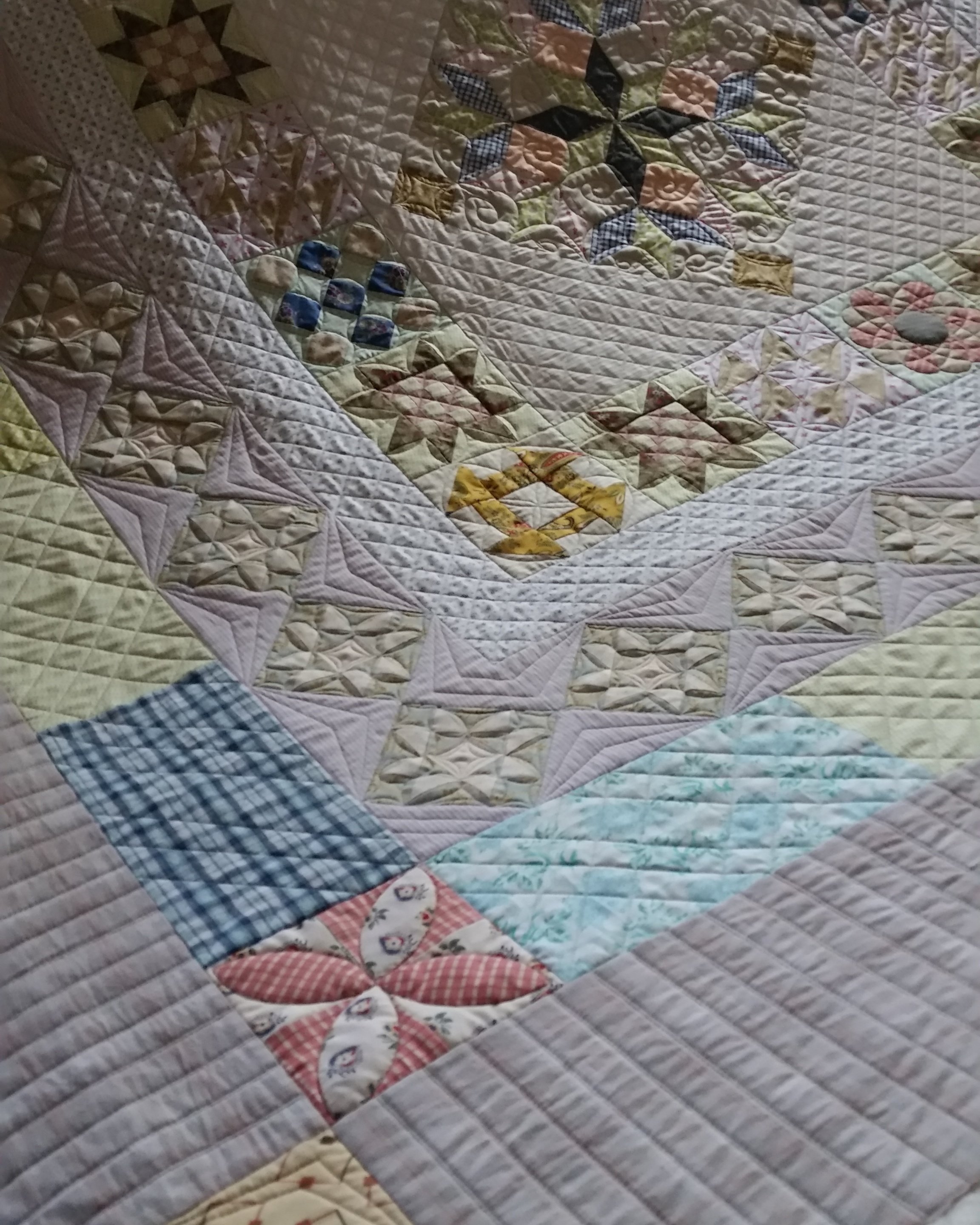 Del av teppe sydd og quiltet av LeKaQuilt, teknikk Engels Papirsøm